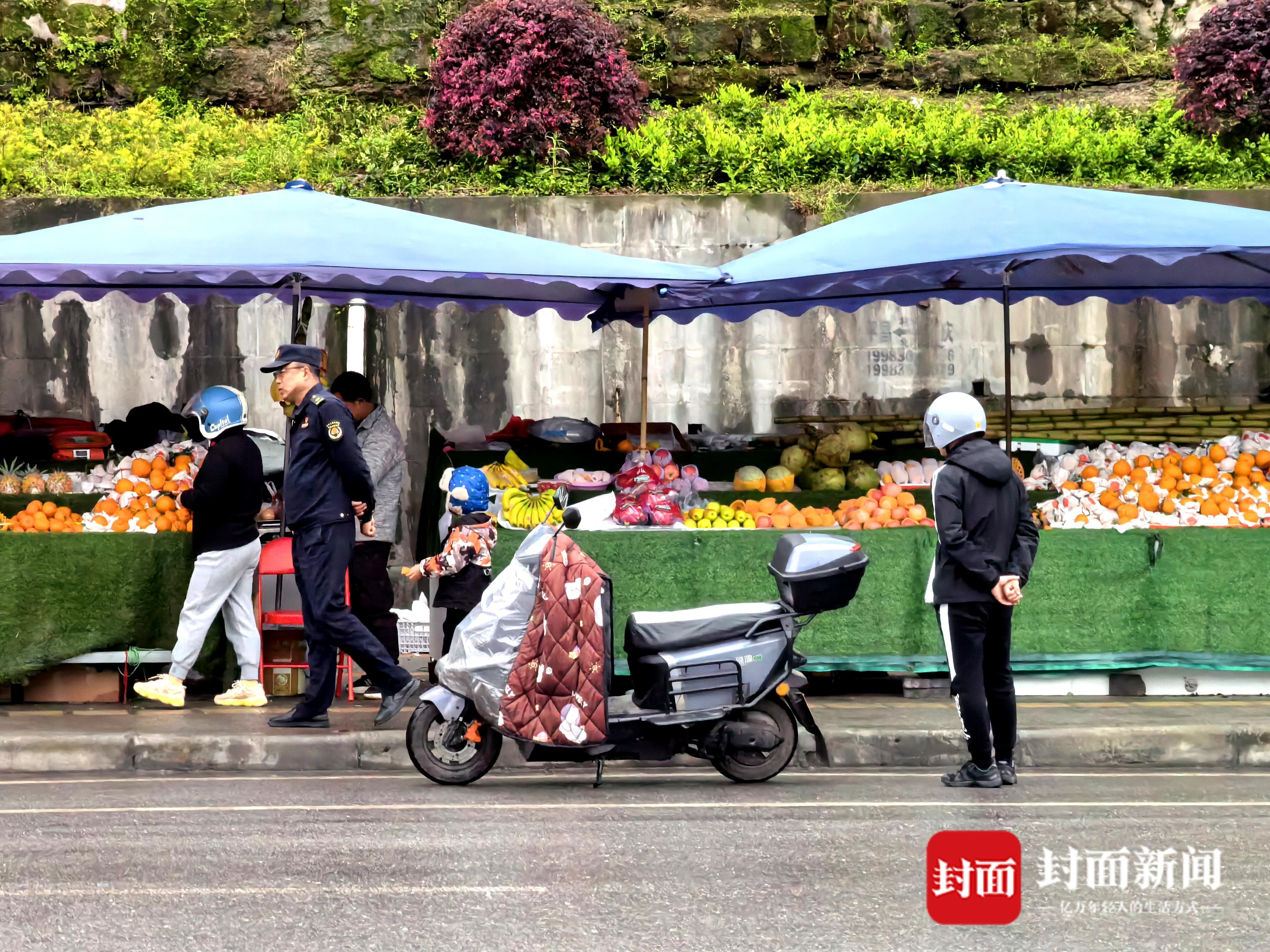 在通河大桥摊区卖水果的王先生,以前在省外做蔬菜批发生意,十年前回平昌安家,照料家中两位八旬老人,固定摊位让他结束了奔波生涯:“下雨天一天也能赚300多元,节假日人多,单日营业额能突破2000元,平均算下来,一家人的日常开支完全够了。”