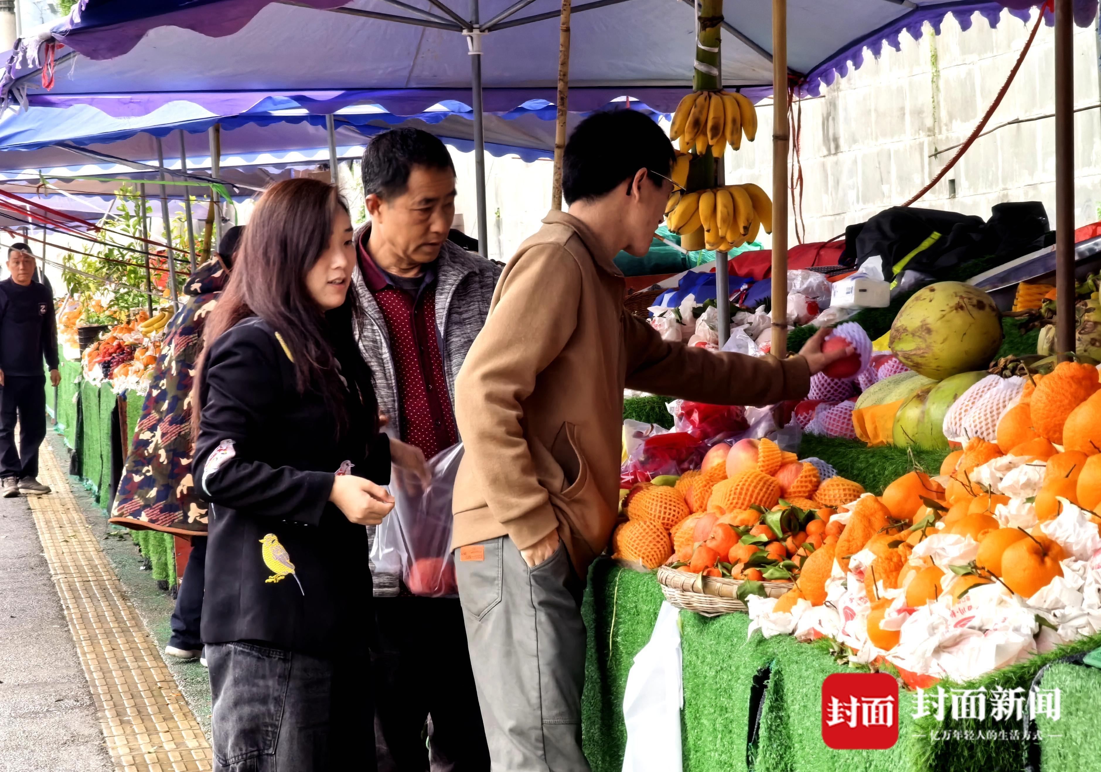 市民在通河大桥摊区选购水果。